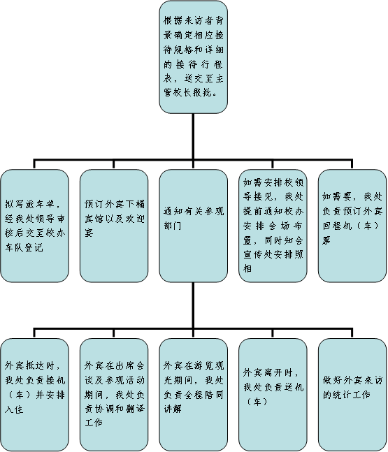 1.我校外事接待工作实行主管校长领导下的外事主管部门负责制。国际交流与合作处负责全校外事接待工作的归口管理。