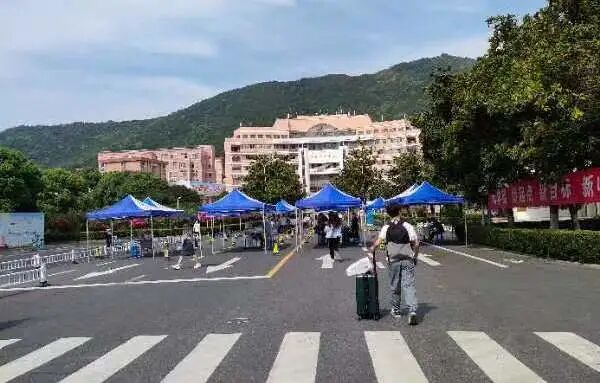 同学们依次在学校门口等待着检查健康码,行程卡和核酸检测证明以及体温检测。有些父母目送着自己的孩子,虽然平日里可能表现出对孩子的“嫌弃”,但是在分别之前还是不断叮嘱孩子,话语里都是不舍。同学们拎着大包小包地进入学校,将行李带回宿舍,有的同学行李有点多,直接坐上了校园公交。