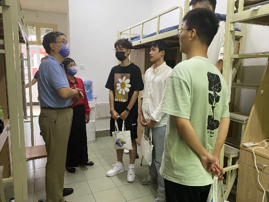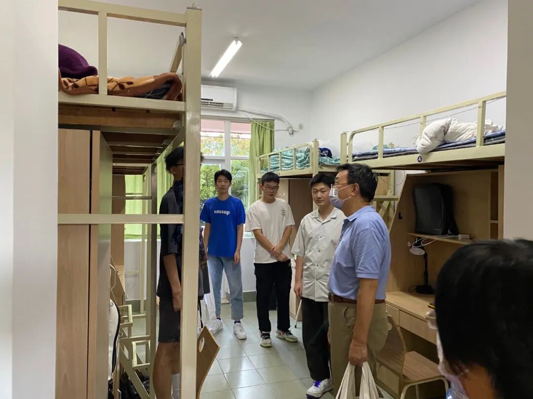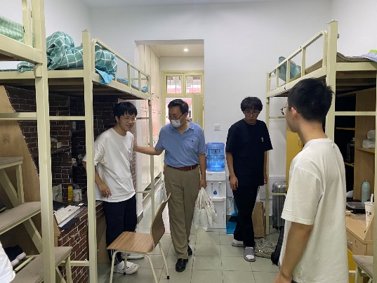 本次走访宿舍的工作重点在欢迎新生,关心学生的生活保障。走访期间,每到一个宿舍,李霄翔院长都亲切地向学生们了解生活情况、学习目标等。他叮嘱同学们疫情当下一定要做好个人防护工作,保持寝室卫生整洁,遵守学校的规章制度,同时把握时光,努力学习,学会自我管理,自我约束,提高学习的主动性。