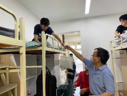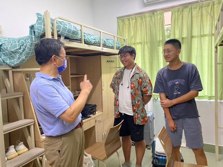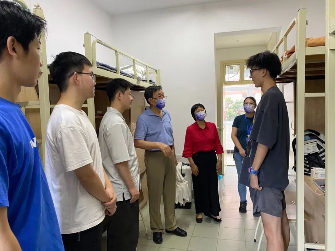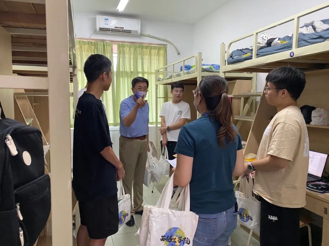 李院长逐一询问新生们是否住得习惯,与新生们进行亲切的交谈,从住宿饮食、生活习惯、发展规划等多方面深入了解,关心同学们在假期安排与感受,并叮嘱大家注意安全,遵守疫情防控规定,做好个人防护,谨防诈骗。