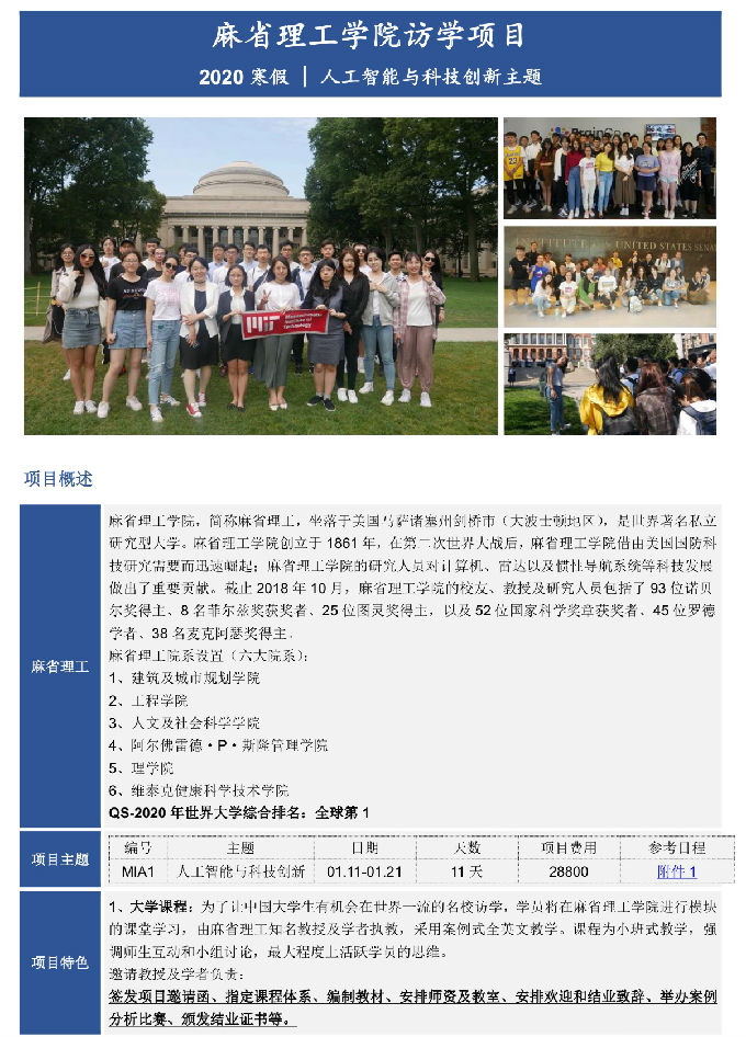 项目名称:无锡太湖学院麻省理工学院寒假访学项目